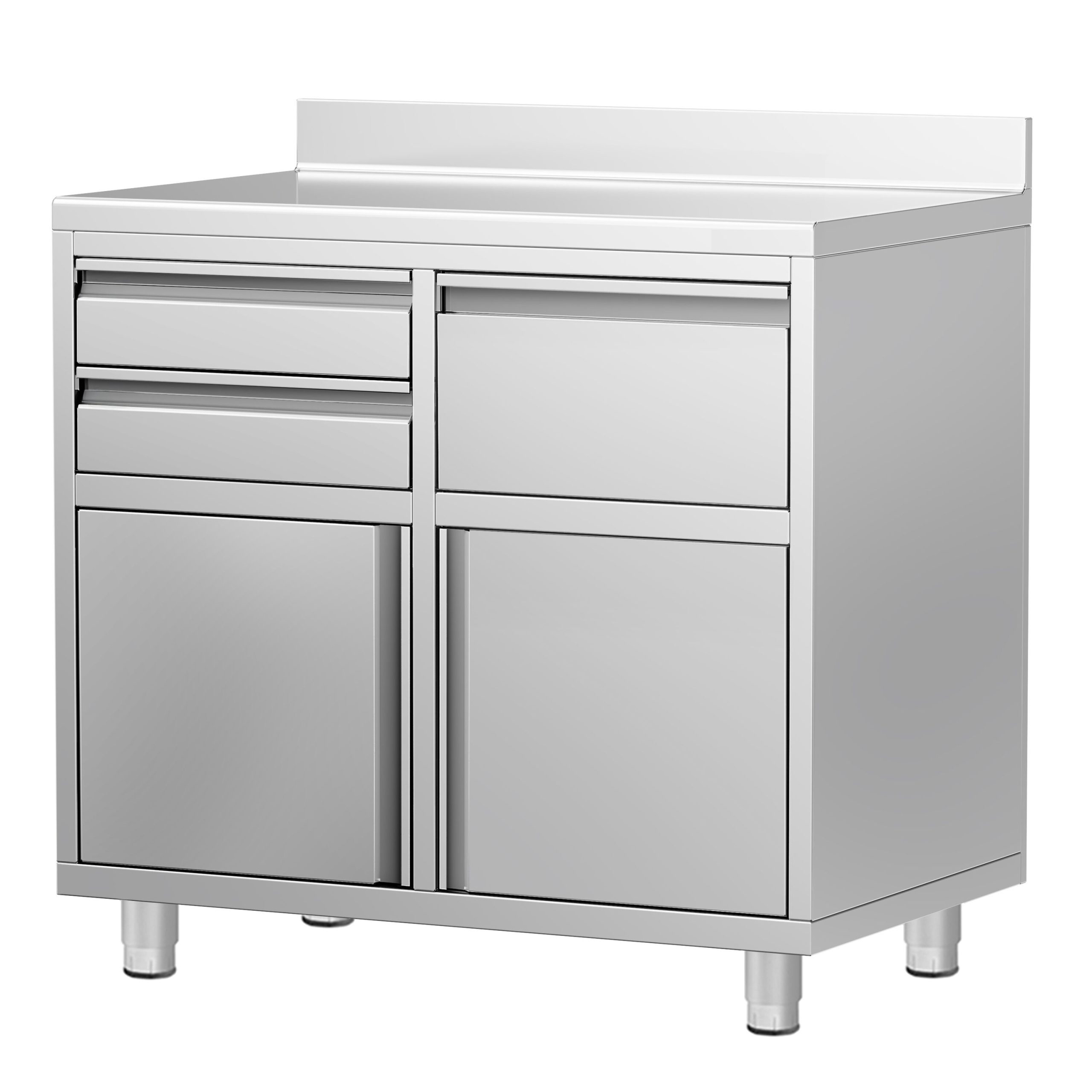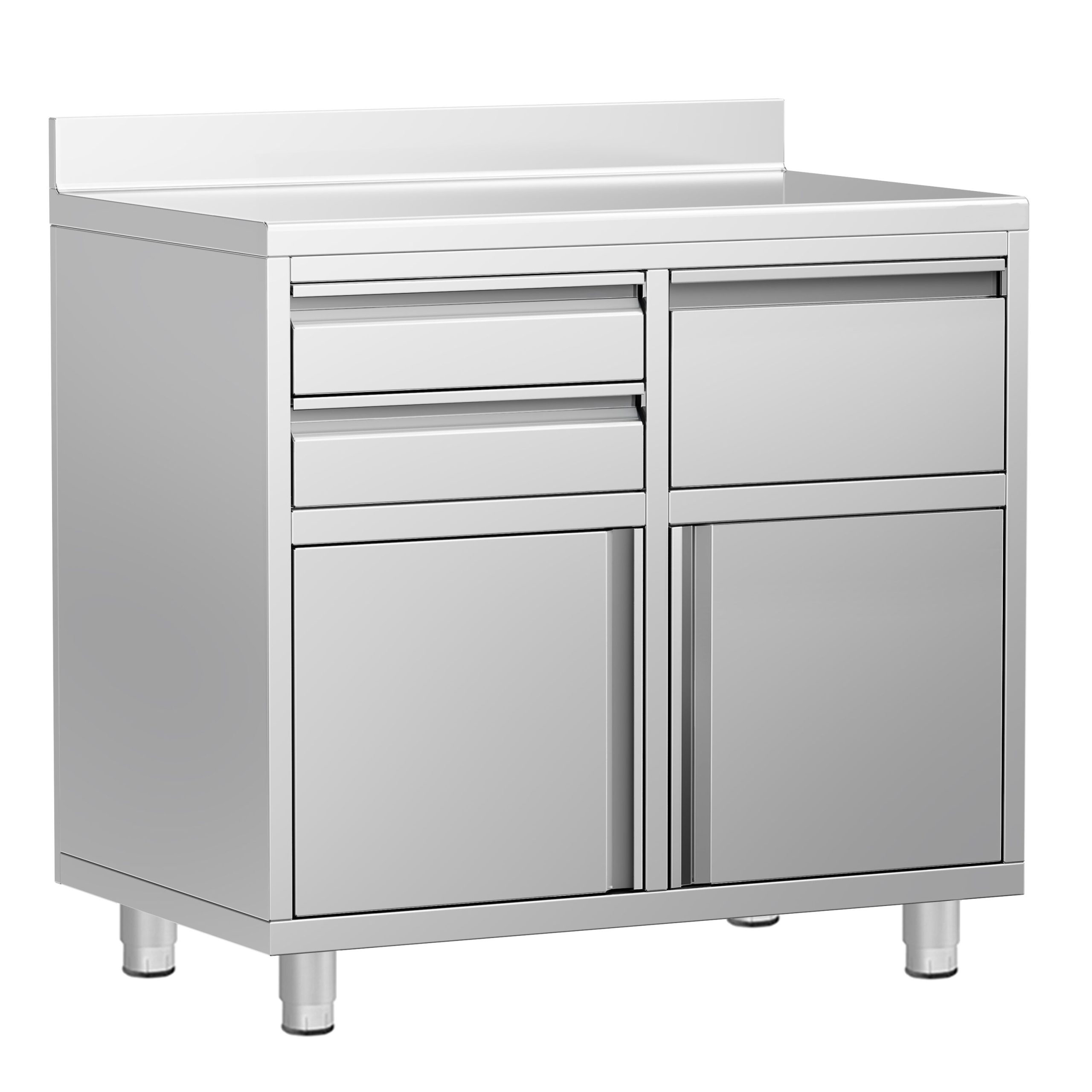 Commercial Work Cabinet - Coffee Machine Cabinet  – with 2 Drawers, 1 Door, Waste Bin & Upstand
