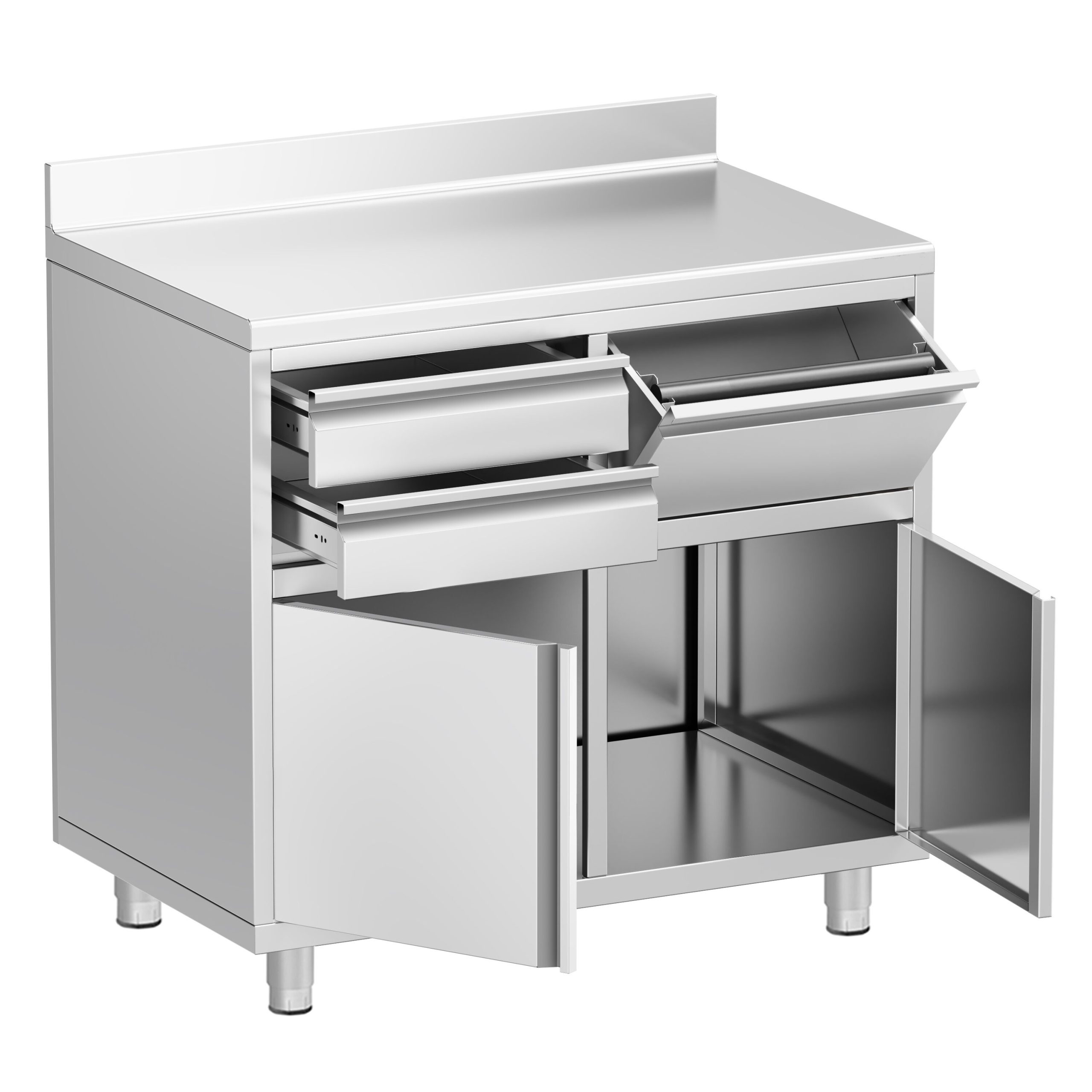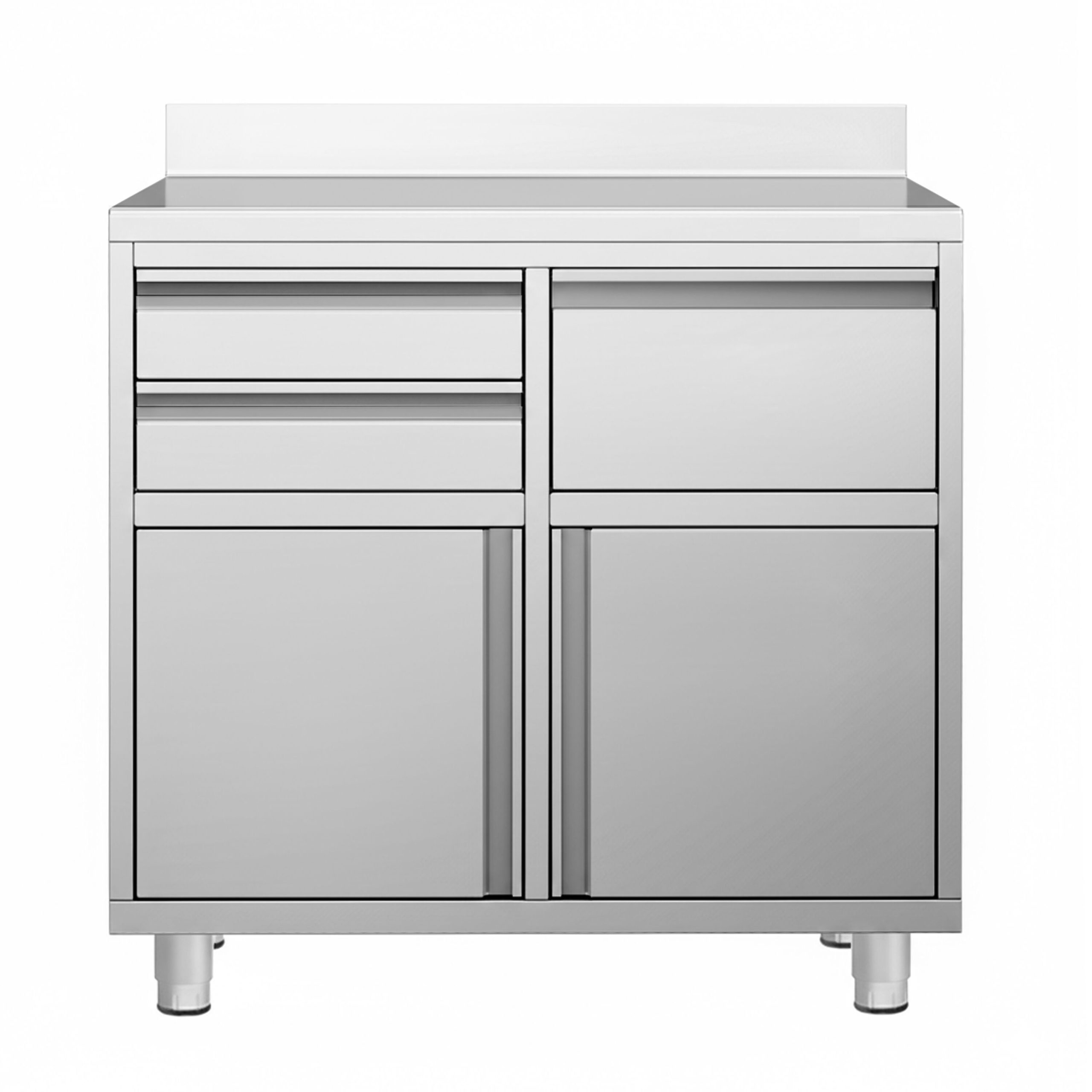 Commercial Work Cabinet – Coffee Machine Cabinet – with 2 Drawers, 1 Door, Waste Bin & Upstand